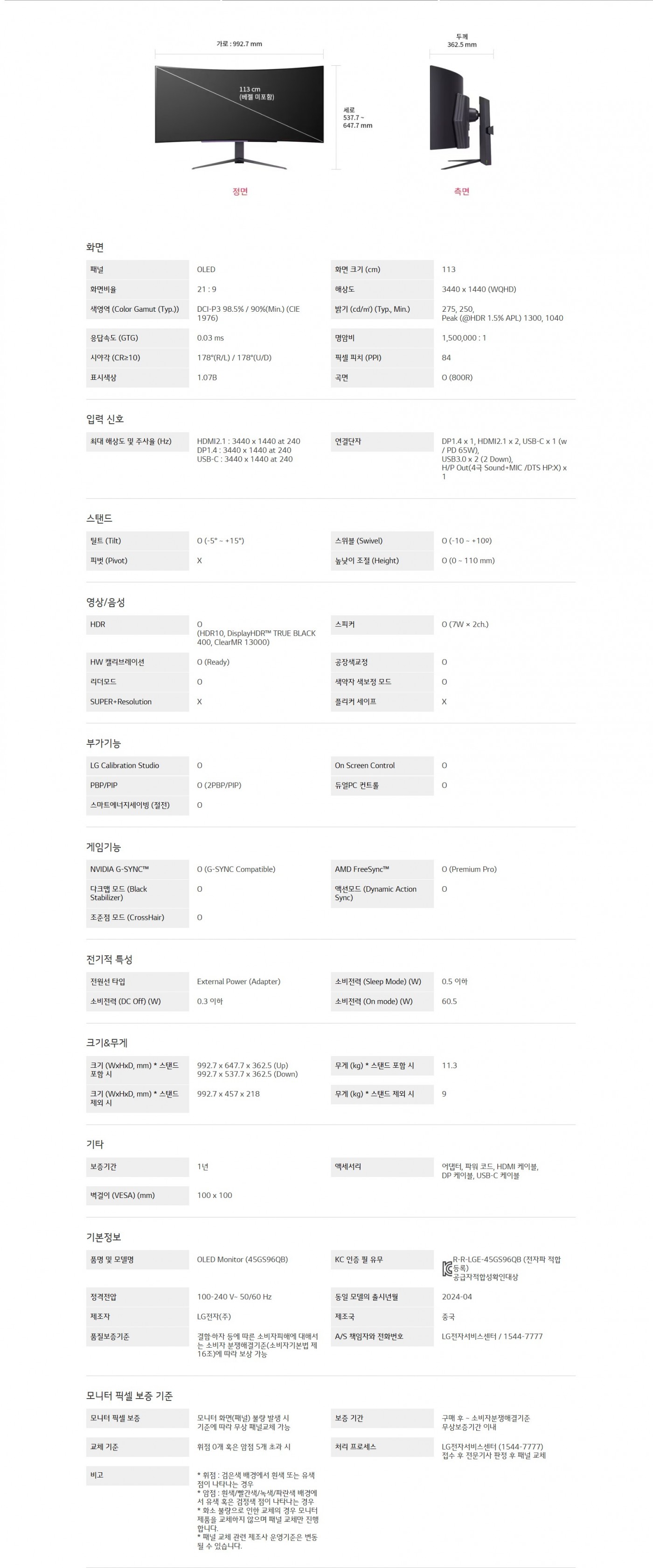 21:9 화면비의 800R 곡면 올레드