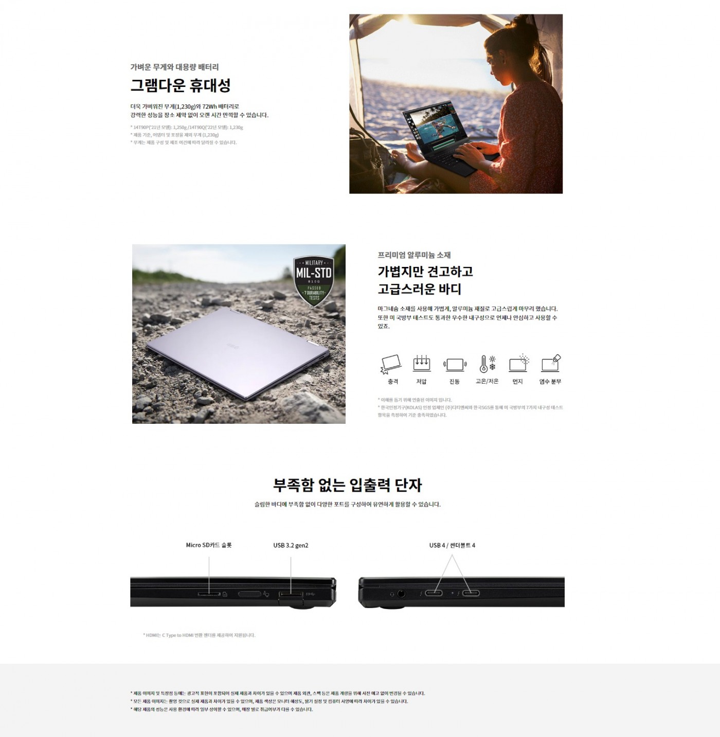 화면크기 (cm) : 40.6 cmCPU : 인텔® Evo™ 플랫폼 12세대 인텔® 코어™ i5-1240P 프로세서메모리 용량 (GB) : 8