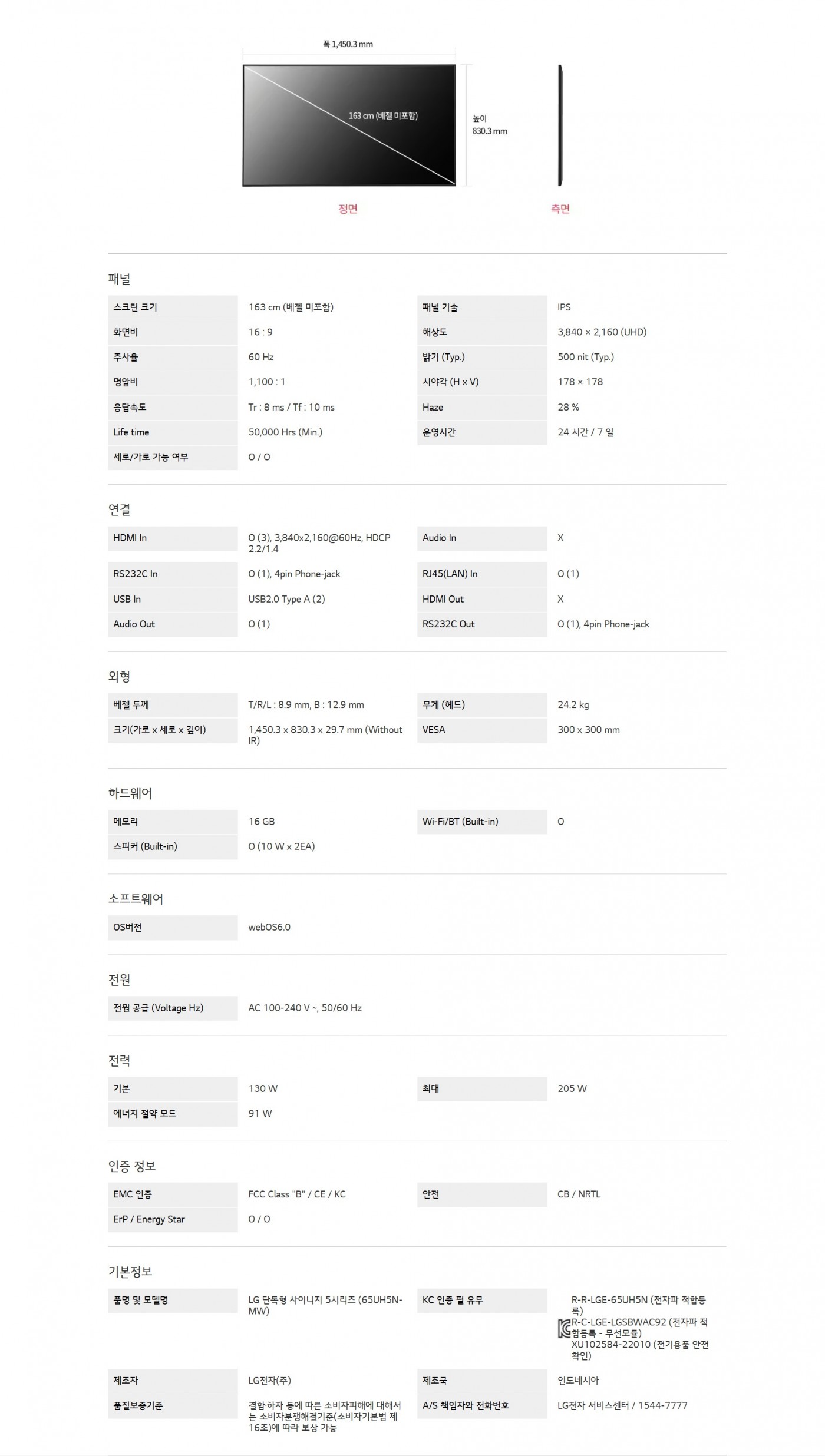 LG 단독형 사이니지 5시리즈 + 벽걸이 브라켓