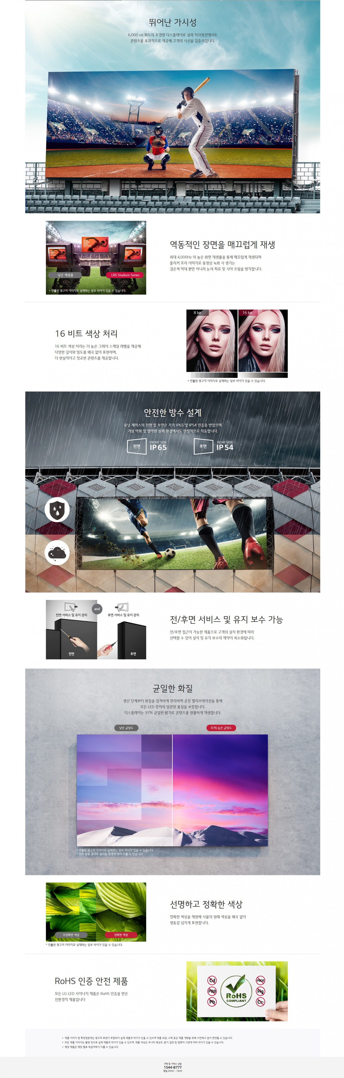 유닛 케이스 크기 (W x H x D) : 1,152 x 768 x 217 mm밝기 (보정 후) (cd/m²) : 6,000 cd/m²시리즈 : LBS 스타디움 시리즈