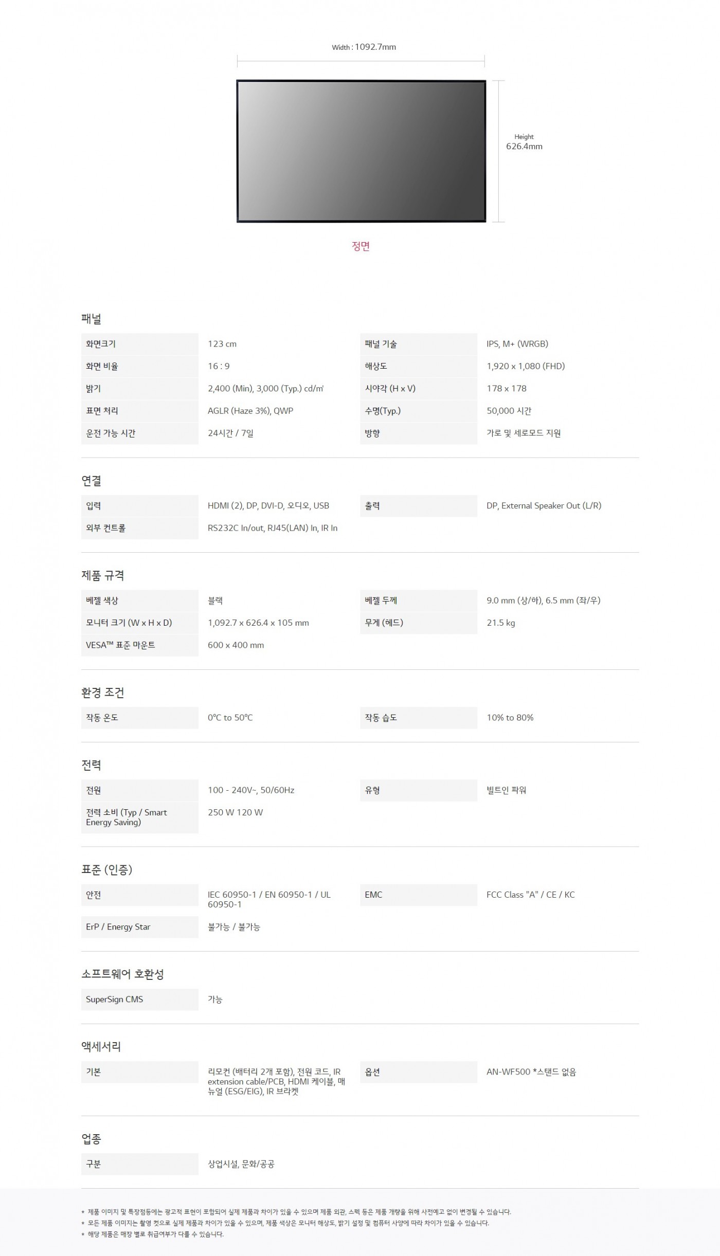 밝기 : 2,400 (Min), 3,000 (Typ.) cd/㎡