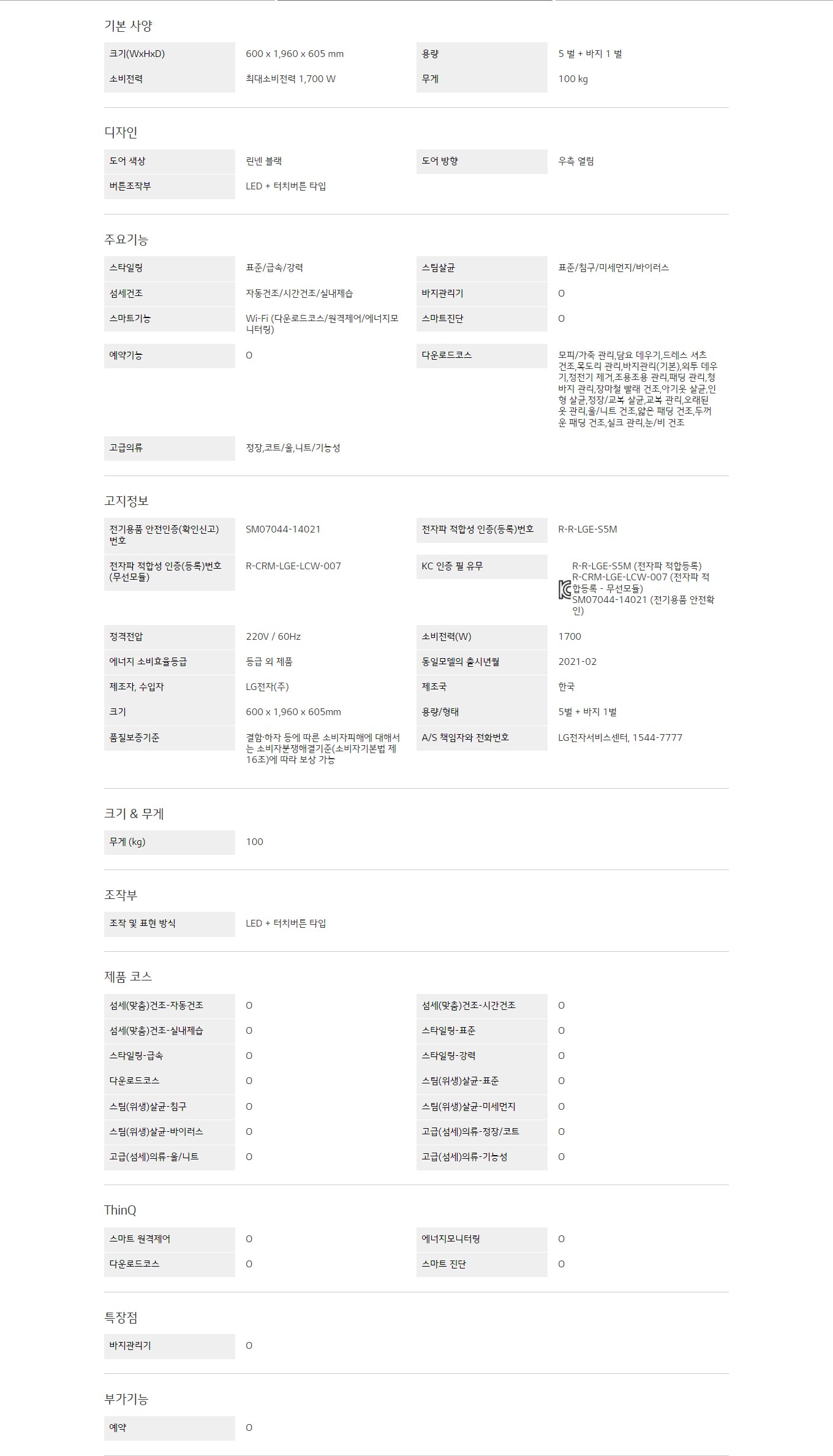 용량 : 5벌 + 바지 1벌